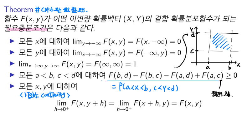 # 결합 CDF의 필요충분조건 **암기** cf) CDF의 필요 충분 조건에 대해 공부했었다. 이제 변수가 2개가 된거다..