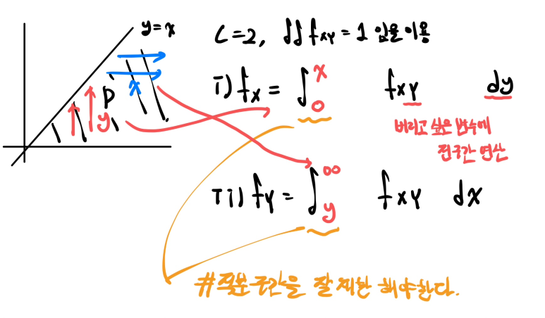 # Point.. Marginal pdf 구할 때, 적분 구간의 설정
