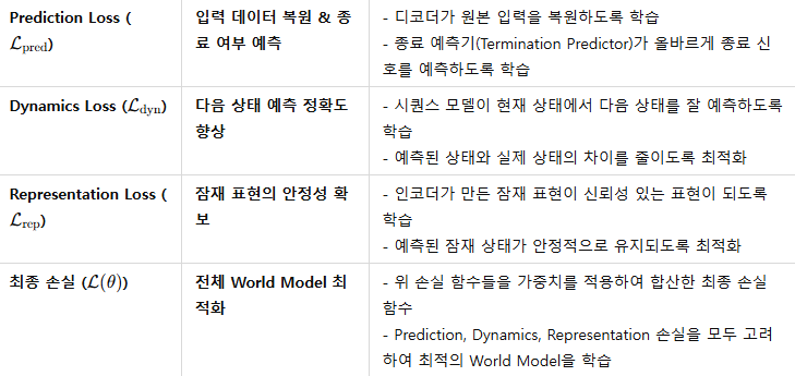 - World Model 학습 향상 → 환경 전이 예측 정교화