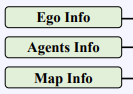 해당 정보는 Ego Info, 다른 에이전트, 과거 궤적 및 state 정보가 global map data와 함께 추출된 것이다. 모든 벡터 데이터는 ego 차량의 위치를 기준으로 상대값으로 표현된다.