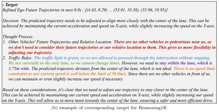 장면 설명을 기반으로한 추론 및 설명을 추가적으로 보안한 GPT-4가 생성한 1000개의 데이터. 이를 Planning-QA와 함께 혼합하여 사전 학습에 활용한다.