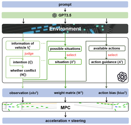 자율주행 차량의 상태, 장애물, 보행자, 그리고 다른 차량 정보가 포함된 환경 정보를 linguistic modalities로 바꿔 LLM에 입력으로 줘 의사 결정 및 설명을 수행하는 연구이다.