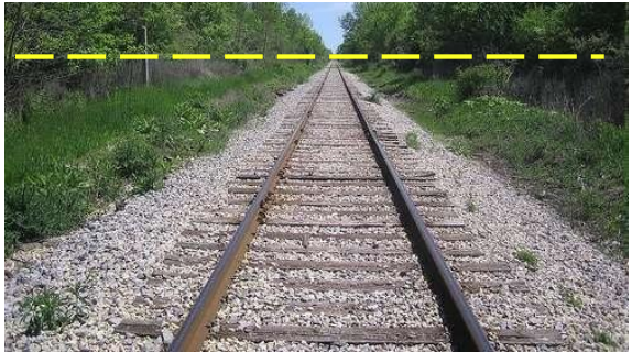 좌: 평행한 직선 쌍이 같은 소실점에서 만나는 사진 / 우: Horizon Line 예시