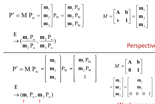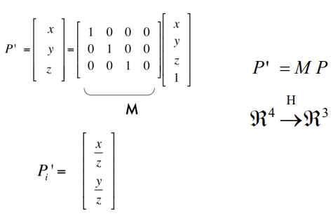 -> 아니다. z로 나눠주기에 이건 선형 계산이라고 할 수 없다. 행렬 곱은 항상 선형 변환만 표현할 수 있기 때문에 우리는 이걸 행렬 곱으로 표현할 수 없다.