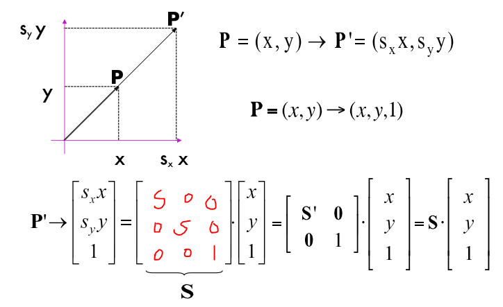 2) 2D Scaling, 자유도 2 -> Sx = Sy이면 자유도 1