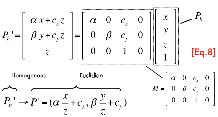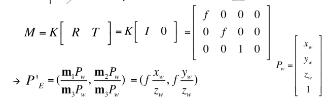 만약 좌표계도 일치하고, K 행렬이 포컬 랭스 요소만 포함한다면 아래와 같이 간단하다면 다음과 같이 표현할 수도 있다.