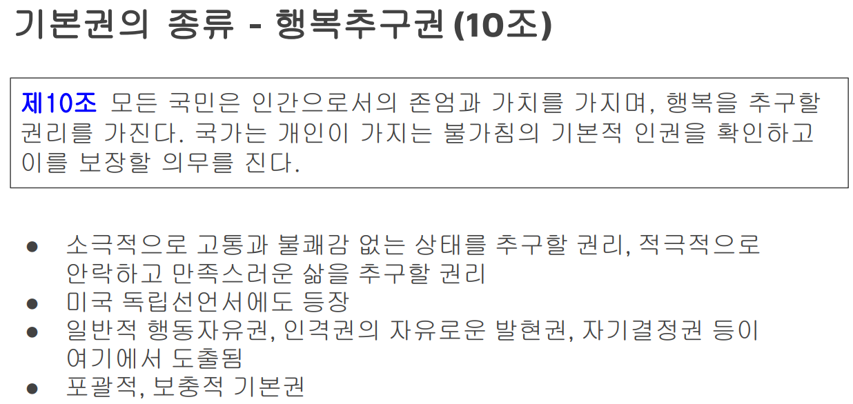 목차1. 헌법 2. 행정법 3. 헌법 서면 작성방법론 4. 인공지능과 헌법 - 현행법 하에서의 해석 1. 헌법1) 기본권기본권이란, 인간이라면 누구나 가지고 있는 기본적인 권리이다. 헌법적 의미에서 기본권은 국가가 국민에게 부여하게 된다. 이러한 기본권은 국민에게 부여되는 권리이므로 외국인, 법인에게는 '제한적으로 인정'된다. 이러한 기본권은 인간의 존엄과 가치를 기본 사상으로 한다. 또한 기본권은 두 가지 견해가 있는데 우리 헌재는 둘 다 인정한다.1. 국가로부터 자유로운 주관적 공권으로 해석, 칼슈미트-> 국가가 기본권 침해할 수 없다.2. 객관적 가치질서 형성하는 성질, R.smend-> 국가가 기본권 침해할 수 있다.cf. 주관적 공권은 칼 들었으니까... 국가가 침해 X... 이런 느낌으로..